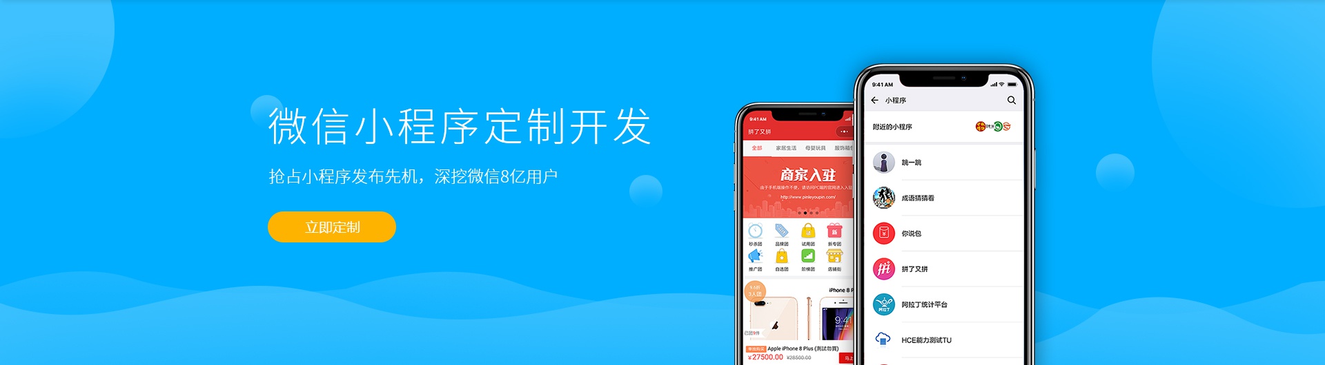 微信小程序开发案例一站式小程序开发定制服务,覆盖各个主流行业,快人一步打造企业专属小程序,抢占市场先机